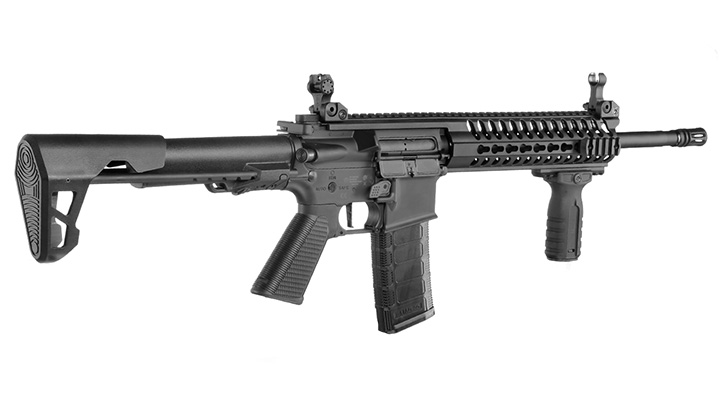Şarjör Tutucu, modern ateşleme modu seçici ve sürgü serbest bırakma düğmesi ile şık alıcı tasarımı